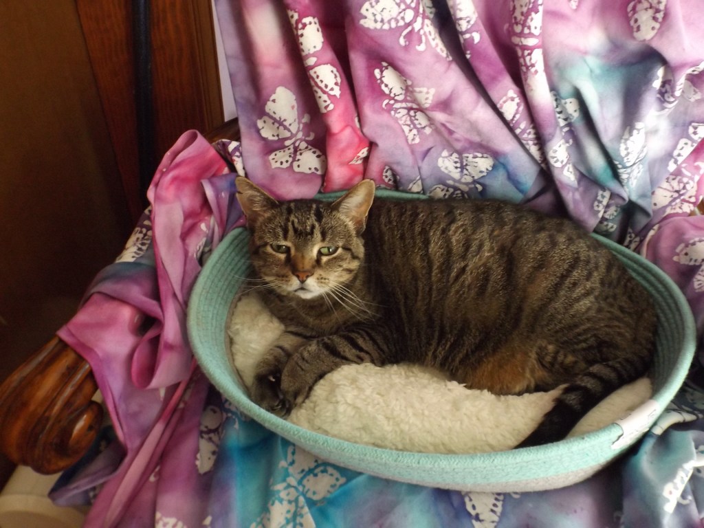 I bought my old girl a cat bed at the supermarket. This is where she lives now. I need to get more.