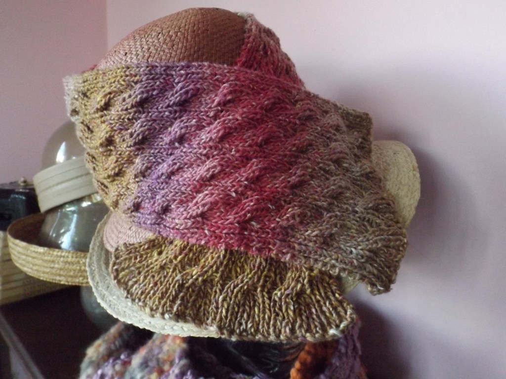 March 30, 2022My daughter likes short neck scarves, but they are a bit hard to find. I’ve made her a few using Sojourner from Miss Babs. She needed something sturdier, so we found Secret Garden by Scheepjes. It’s silk, cotton and polyester. The whole thing is ribbed and looks the same on both sides. I love using this method. You can wrap it around your neck without looking and it always right.