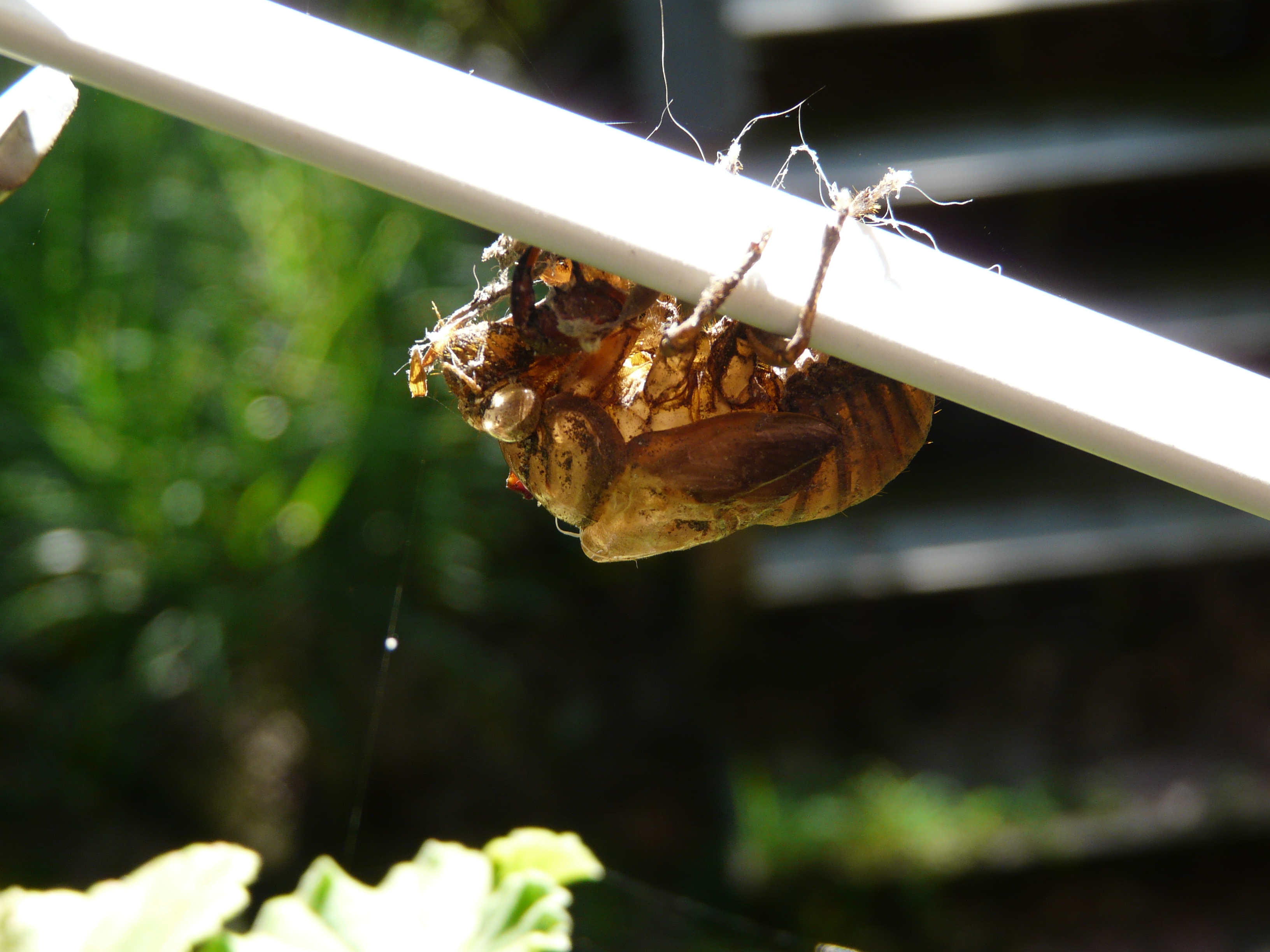 This was hanging on a pot holder on my deck in the morning. I wish that I had seen it emerge. We spend a lot of time on the deck, but it probably happened during the night anyway. I love the way the sunlight comes right through it. I wonder how long it will be before Zip or Maude discover it.
