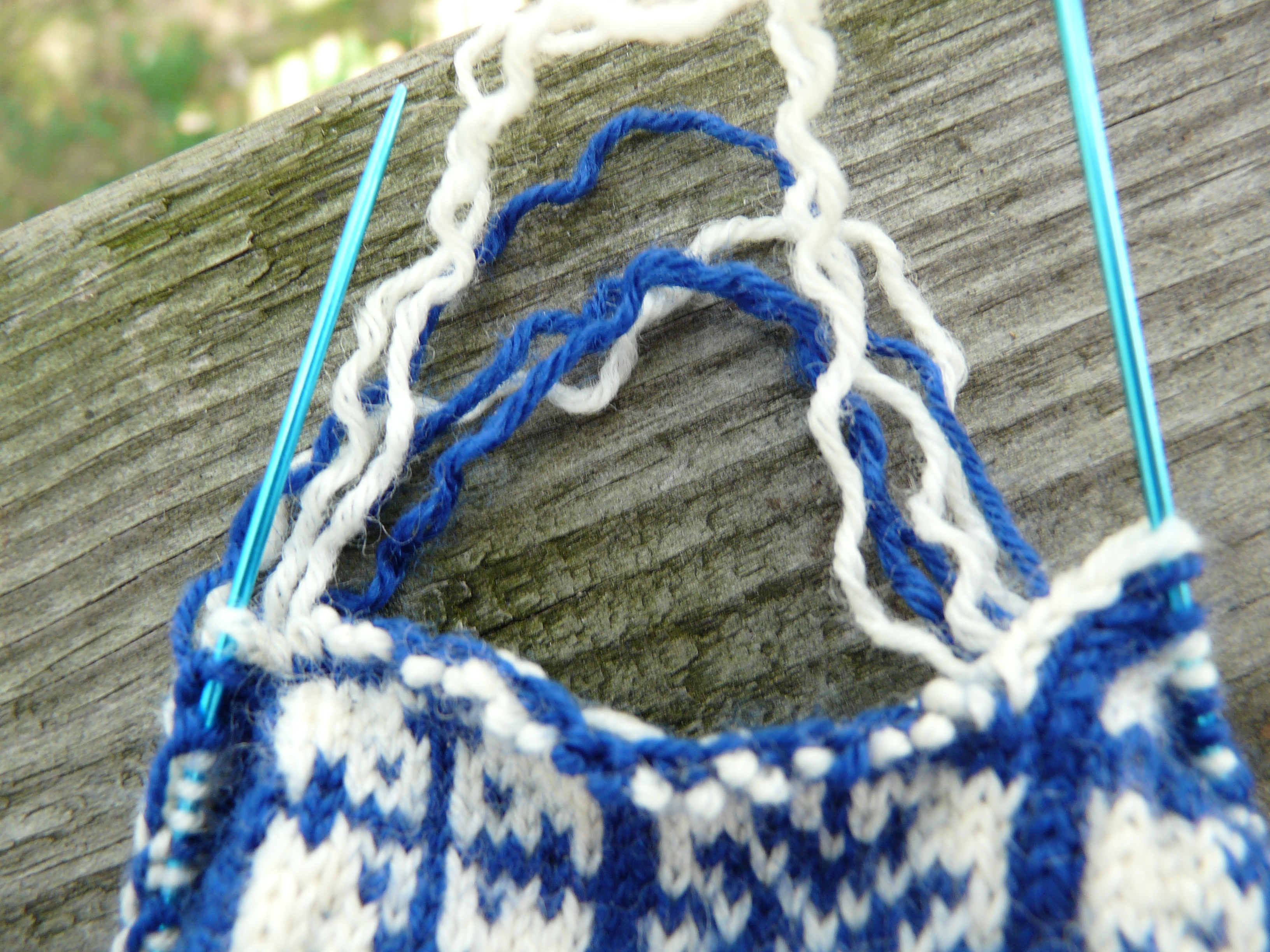 Actually, it’s only three rows, but trying to do it with two colors is a pain. Its looks a little loose on the left side so I’ll have to tweak the stitches a bit.