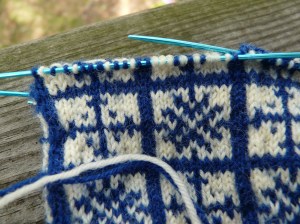 Well. I wasn’t last night. That’s for sure. I had two motifs backward. They had to be removed, but I wasn’t about to frog three whole rounds so I did just the section that was wrong.