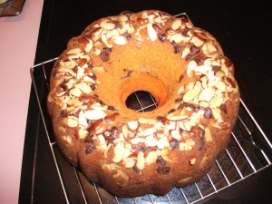 And, here’s dessert.  It’s a chocolate orange cake.  Last week as I waited in line at the supermarket, I picked up a cooking magazine.  It was “The Best of—–” and turned out to be so good that I bought it.  That’s something I haven’t done in years.  The cake was great.  We ate half of it.