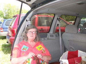 OK. I guess you want to see what I bought. Some venders have moved, but, since I would be looking at everything anyway, I did eventually find the ones that I wanted. It was promising to be a very warm, sunny day so I did the outside booths first. The Tess booth was packed with yarn and people. I didn’t see the color and type of yarn I wanted so I got out as quickly as I could. I found what I was looking for at Creatively Dyed Yarns. What delicious yarn! It was all I could do to keep focused.