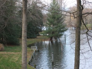 I took these around 3PM. We had several hours of steady rain last night and this morning. At least it wasn’t snow. It would have to be about 30 degrees cooler. Every time there is a good rain, it overflows my neighbors’ bulkheads and theirs are newer than mine. I guess this is why we have to have flood insurance. Of course if our house ever was flooded so would the entire Delmarva peninsula. And when was the last time that happened? I also find it interesting that we have only been required to carry flood insurance since Katrina! I will be so glad when we pay off this house.