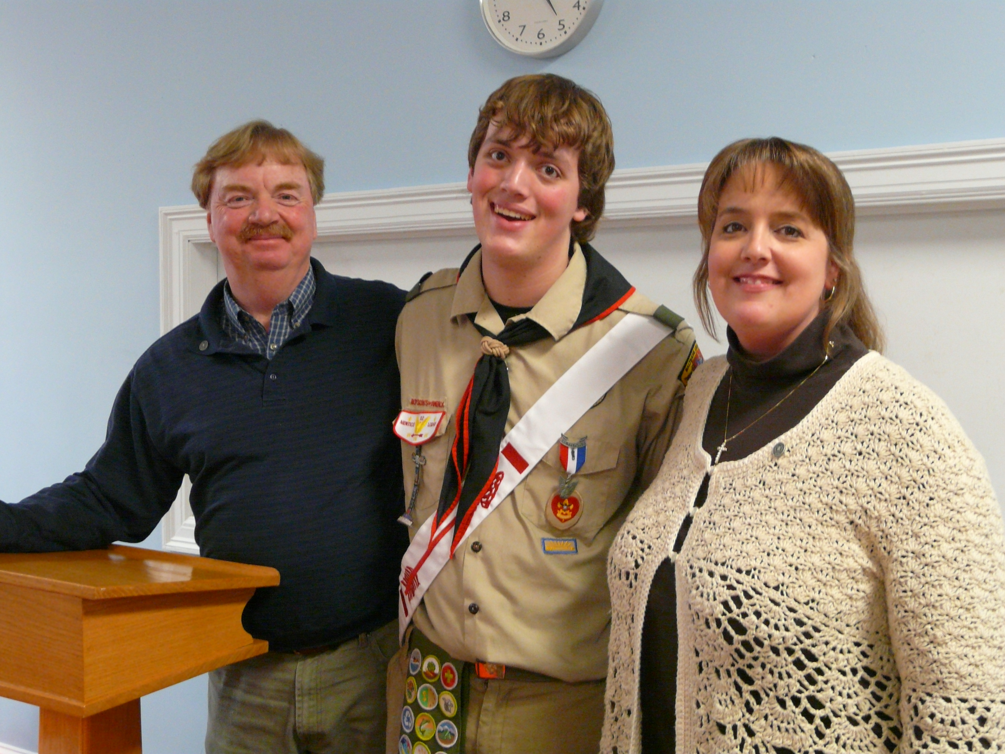 Here he is with Mom and Dad. We are so proud of him. He hs been working on this for about a year and he is only sixteen. How did he manage to do it along with AP courses and band? My daughter and son-in-law are not pushy, but they are supportive. I think that it’s just the way he is.