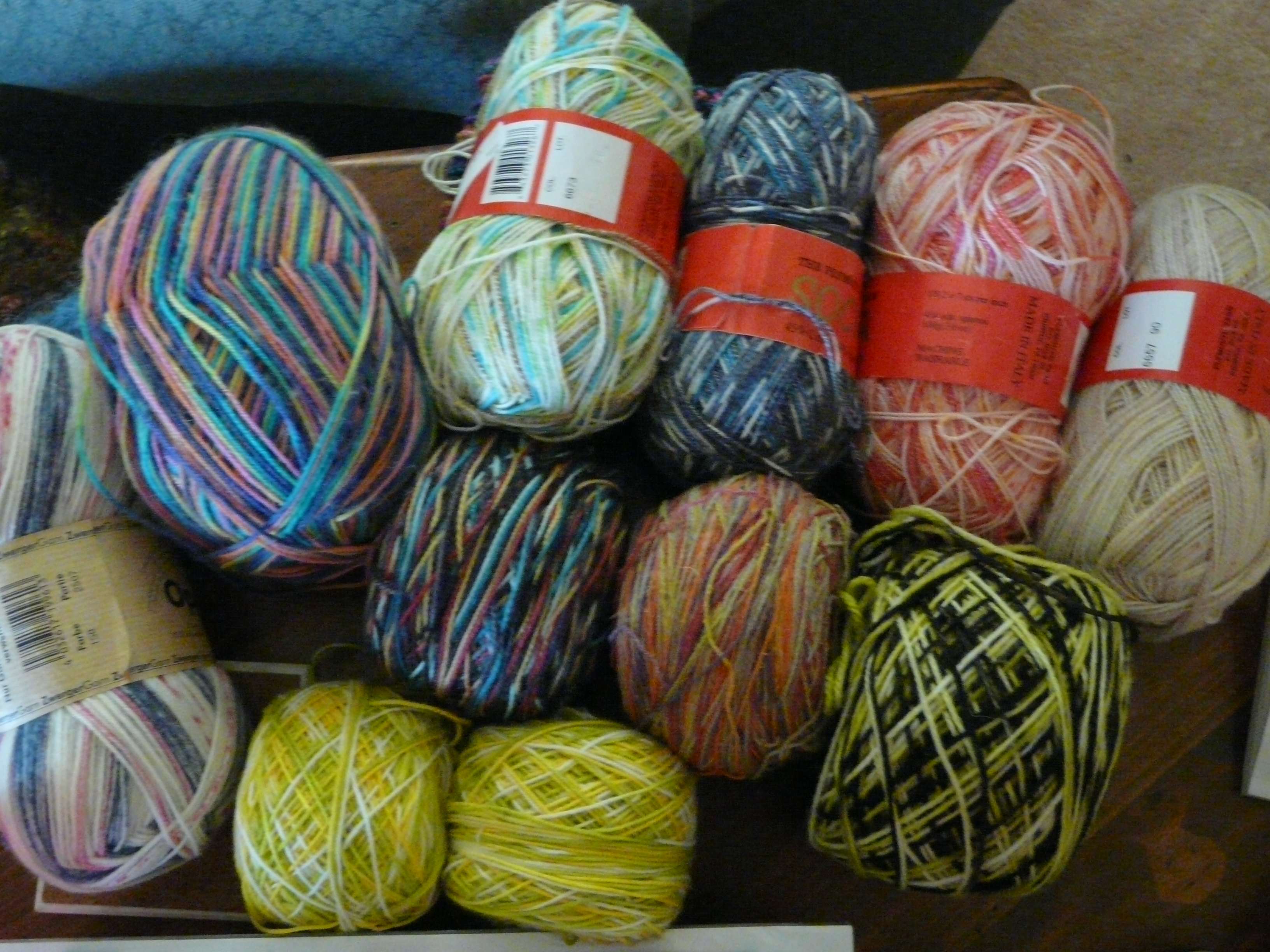 The yarn is Socks That Rock medium weight(dk). They were a lot of fun to make and knit up quickly. I won’t be wearing them until Winter as they are quite heavy. The next pair is fun too. Wait ’til you see them!