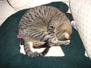 Around 11 this morning, I heard her scratching on the door to the garage. I knew it was her by the scratch. It was warm last night so she didn’t bother to come home. I called her a slut. She told me to shut up and get her something to eat. I mentioned that she also missed supper. She said it didn’t matter. She had something that was warm and juicy and a little runny–just the way she liked it.