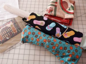 We had a great time. Everything was 15% off. They had various demonstrations going on and Maria’s favorite, free snacks. It is really hard not to get overwhelmed by so many beautiful fabrics, patterns, books, and kits. Somehow. I managed to get out of there with one pattern, on kit and three pieces of fabric.