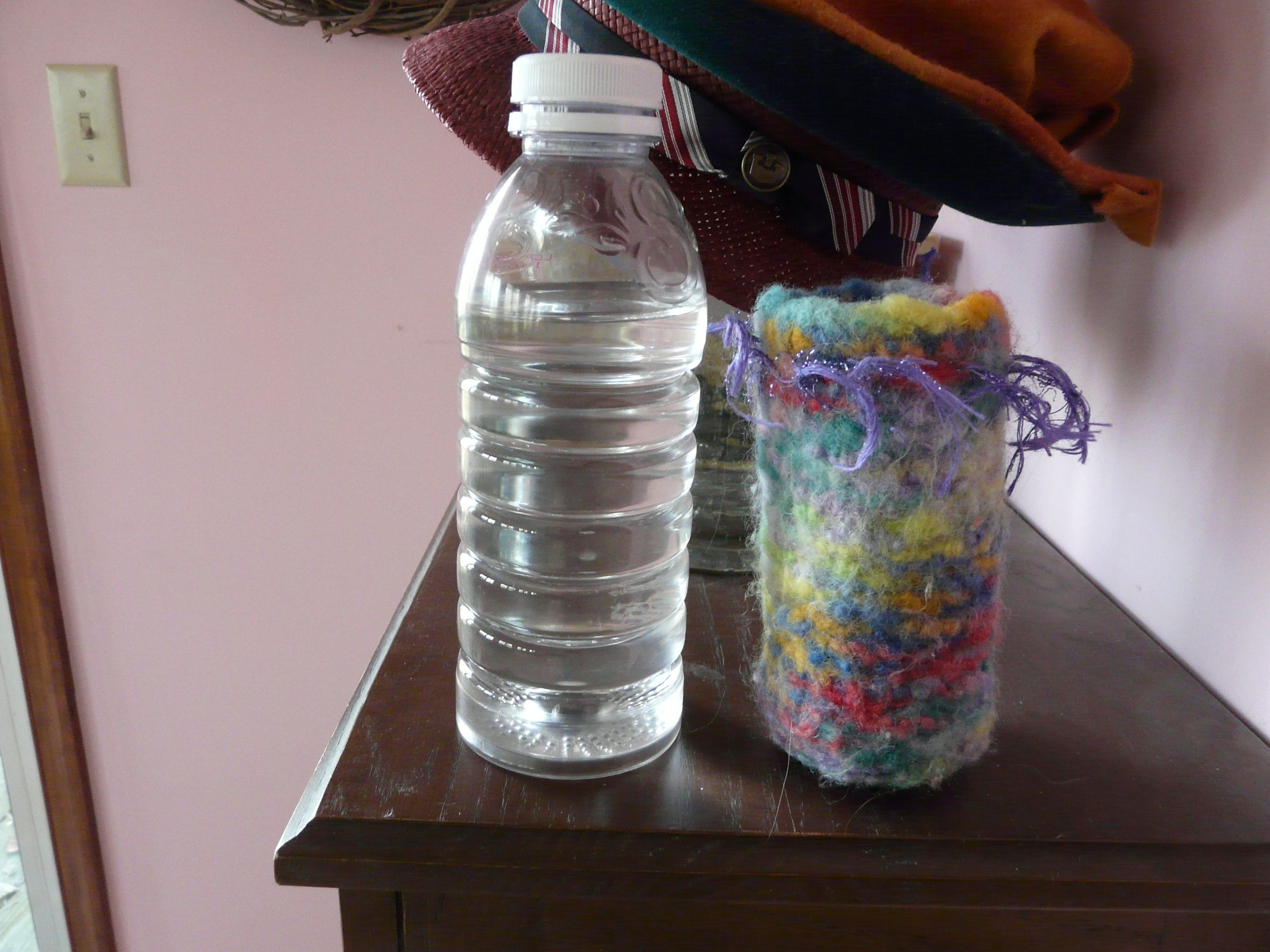 Tags: leftover sock yarn, sachet bag, Snapple in plastic bottles, twisted cord