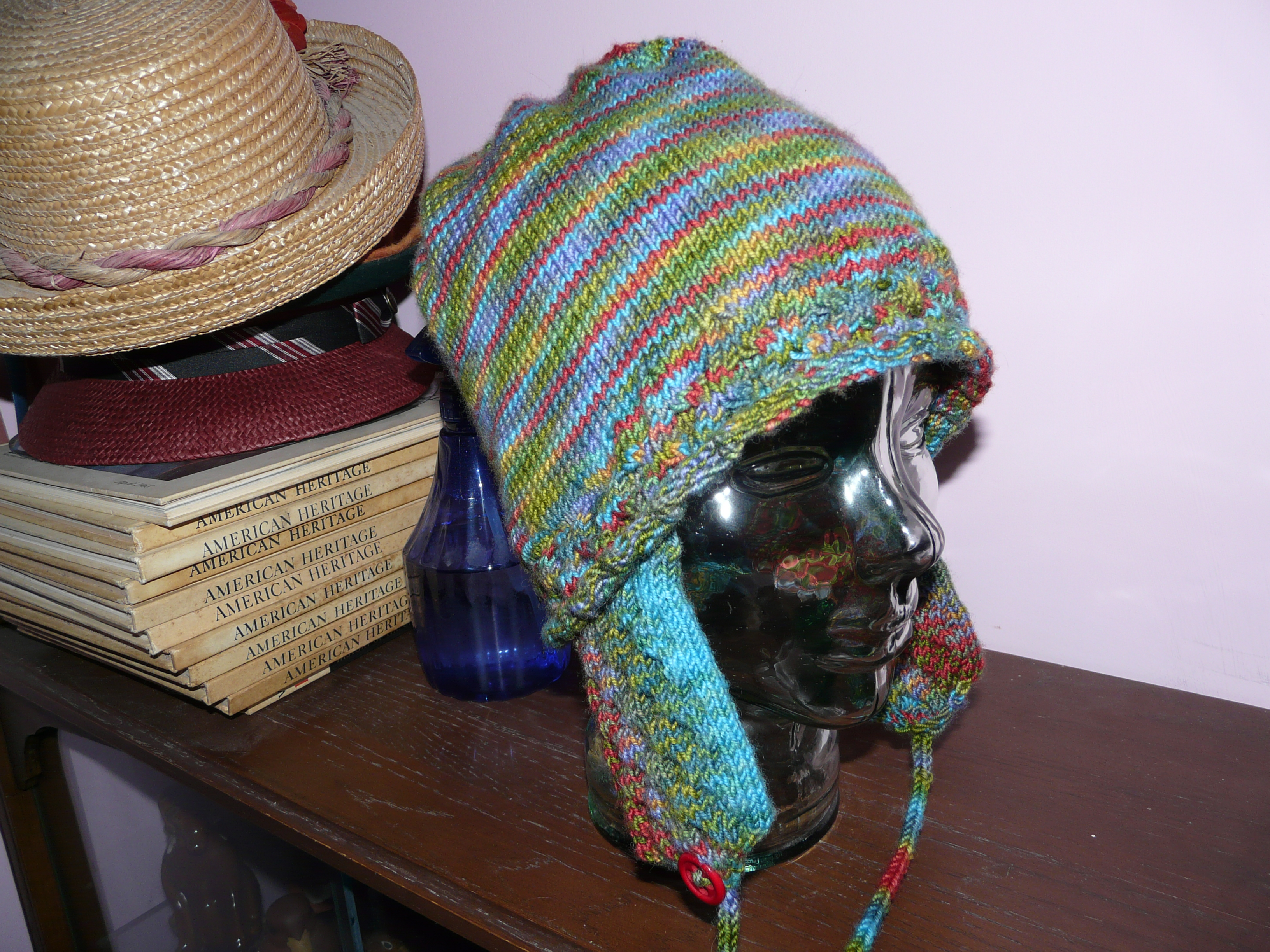 The cap is eight stitches wider to accommodate my big head. I also like the way the colors patterned on the ear flaps and cap.