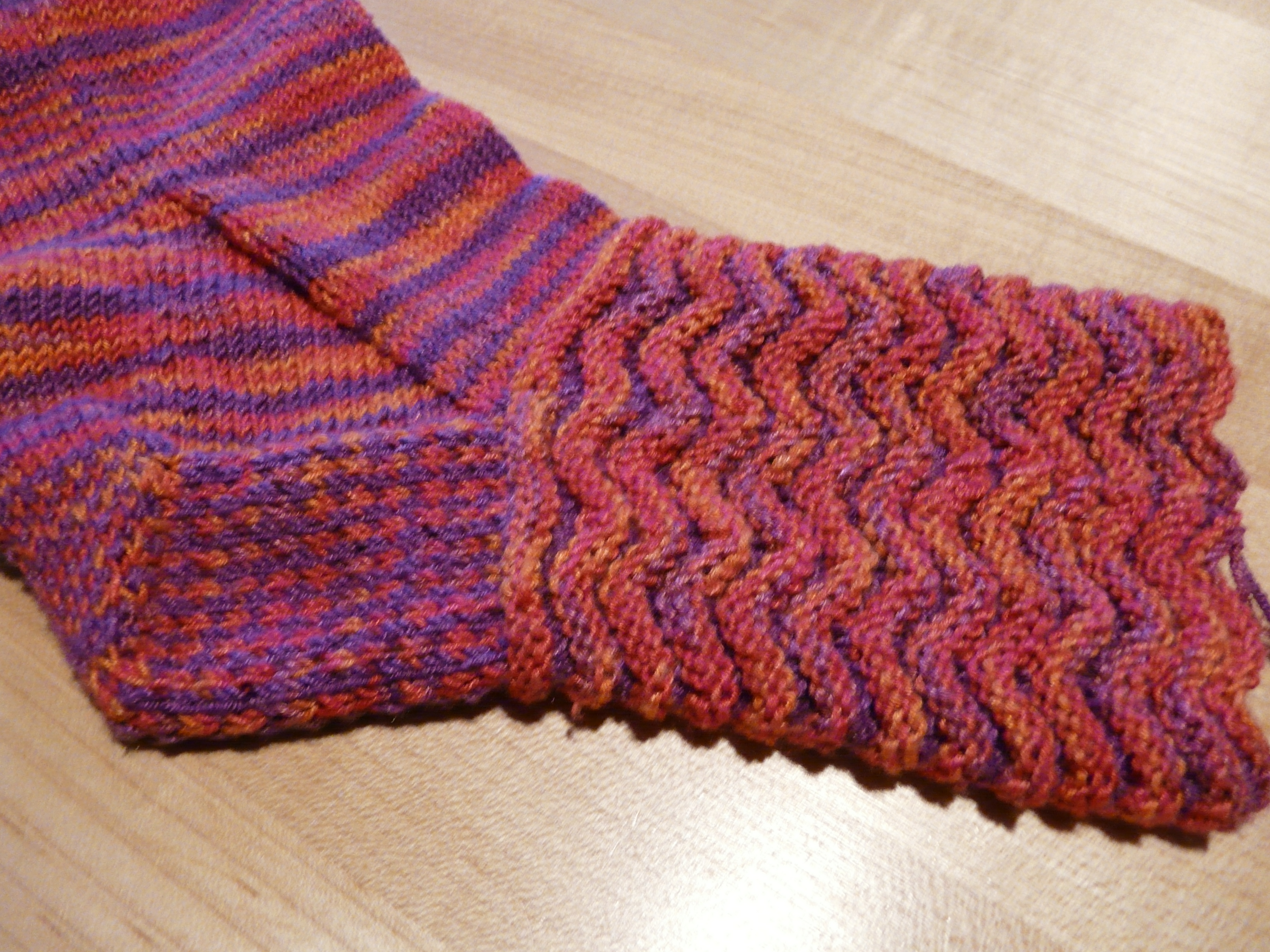 I realize that the purple stripes are hard to see. I’ll try to take a better picture. The heel looks great. I did a little checkerboard on the bottom. The pattern will be up as soon as I fine tune it.
