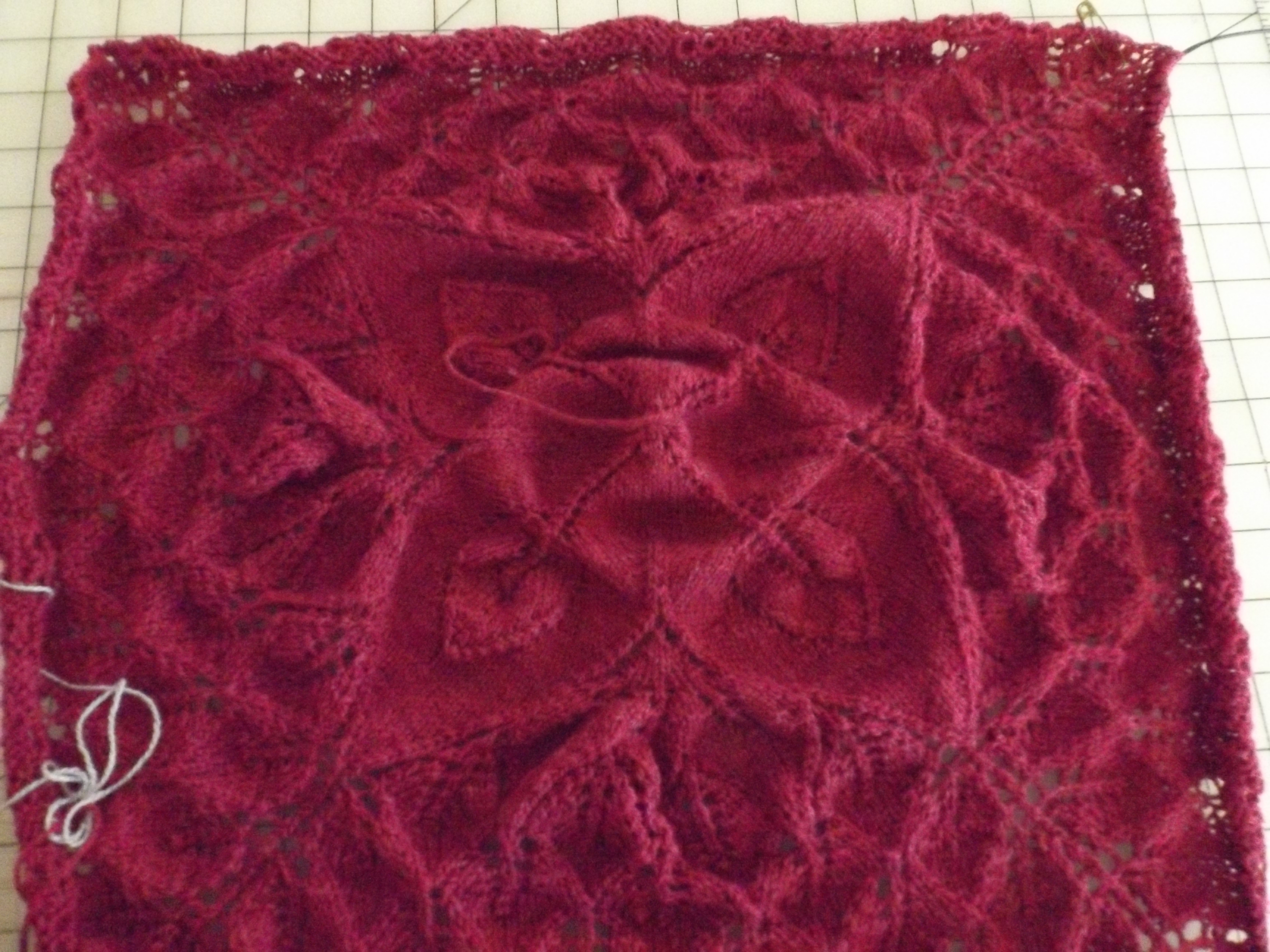 Here is the middle section. I’ve just started the first wing. The finished shawl will be V-shaped. It’s a Craftsy class so I’m learning as I knit. It’s moving a lot faster than I had thought. I’m enjoying it! I think I’ll be happy with it. If not, it’ll make a great gift for someone.