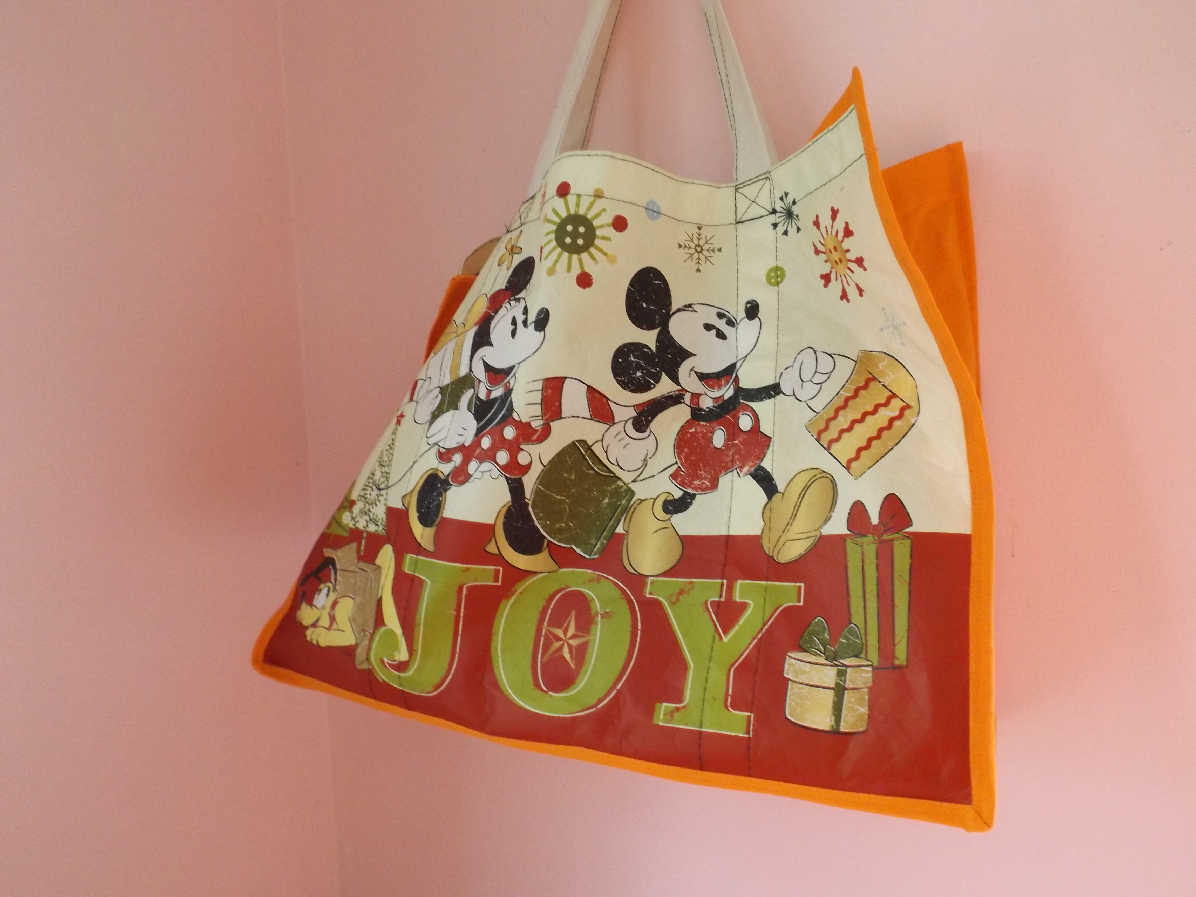 Here’s a little something I did before I got sick. My favorite tote was falling apart. The orange fabric is new. It also, now, has a strong bottom.
