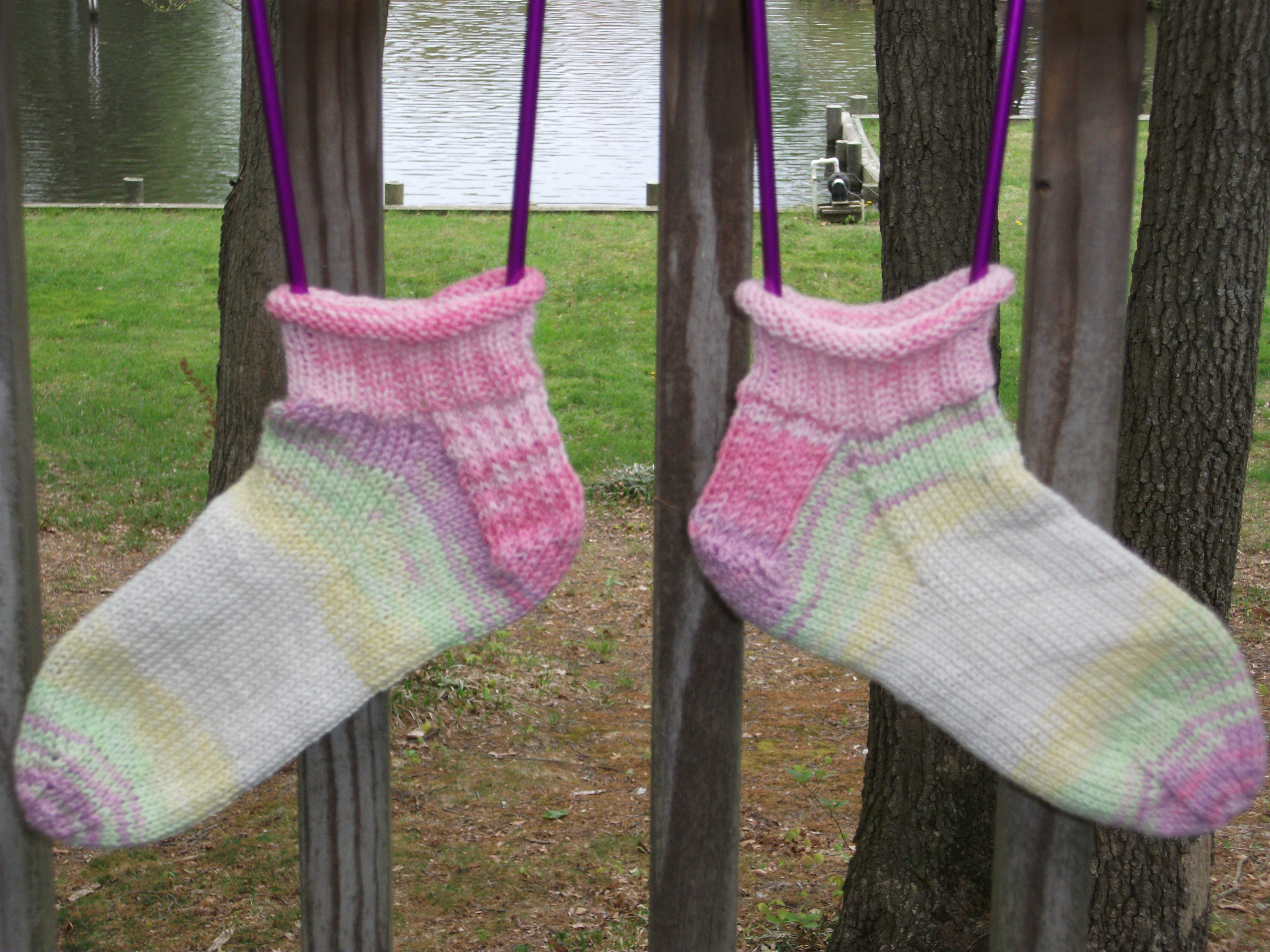 Knit 24 stitches on to one needle to begin heel flap. Purl back. Right side: slip 1, knit 1, 12 times. Wrong side: slip one, knit 23. Repeat these two rows for 2 1/4 inches. End with a wrong side row. Sl 1, knit 13, ssk, k 1, turn. Sl 1, p5, p2tog, p1, turn. Sl1, knit to one st before gap, k2tog, k1, turn. Sl1, purl to 1 st before gap, p2tog, p1, turn. Repeat these two rows until all sts are used. End with purl row, turn.