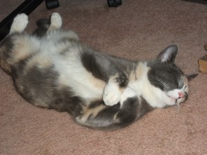 These days, the only time I see Flo is when I get up in the morning and at suppertime. She likes to sleep on the porch furniture at night and in the bushes during the day. I don’t like her spending the night out, but she doesn’t care. Don’t tell me to keep her in. You have never been around this cat when she wants to go OUT! And it better be NOW!