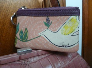 Sweetums only likes one kind of Reeboks. Yeah. I know. Boring. But I can’t point the finger. I only wear Haflingers. He parked by Fossil and walked over to Reeboks. He was finshed by the time I came out of Fossil. I bought a change puse. I didn’t see anything else interesting. I went to Dooney & Bourke and he followed me. Here, again, I saw several things,but that was ‘just right’. Sweetums liked a red suede, but it wasn’t quite right. He is now looking at purses on-line for me. That’s why I call him Sweetums.