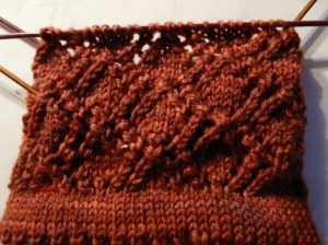 I have been thinking about making a Whipple to go with the purple and pink hat and gloves. I think I saw one in Knitty, but I can always wing it. And that will be it for accessories for a while. They are starting to make me crazy. Next up. Baby gifts!