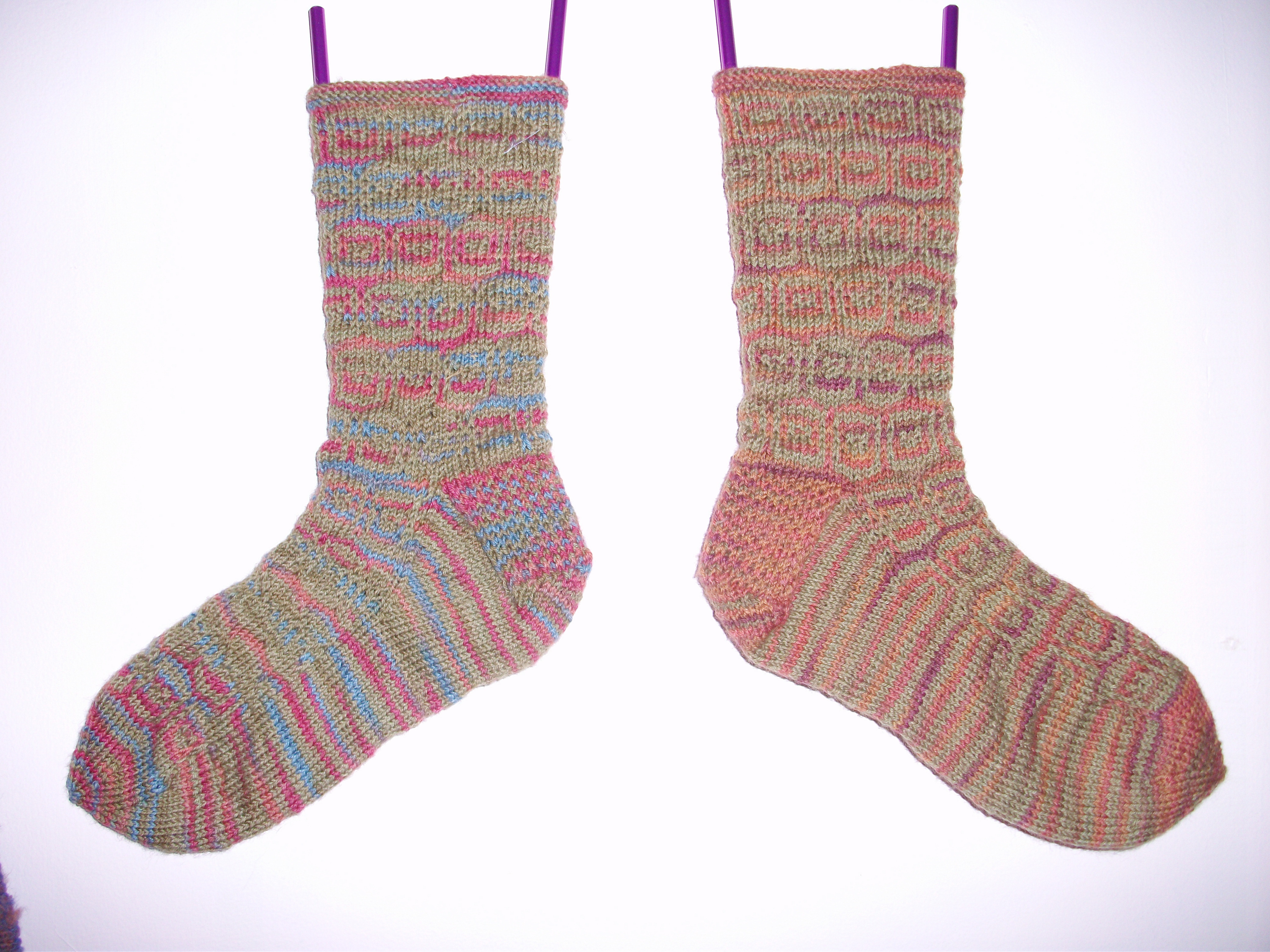 My socks will be finished today, except for the toes. I want my daughter to try them on first. They should fit. Her feet are only a half-size bigger than mine.