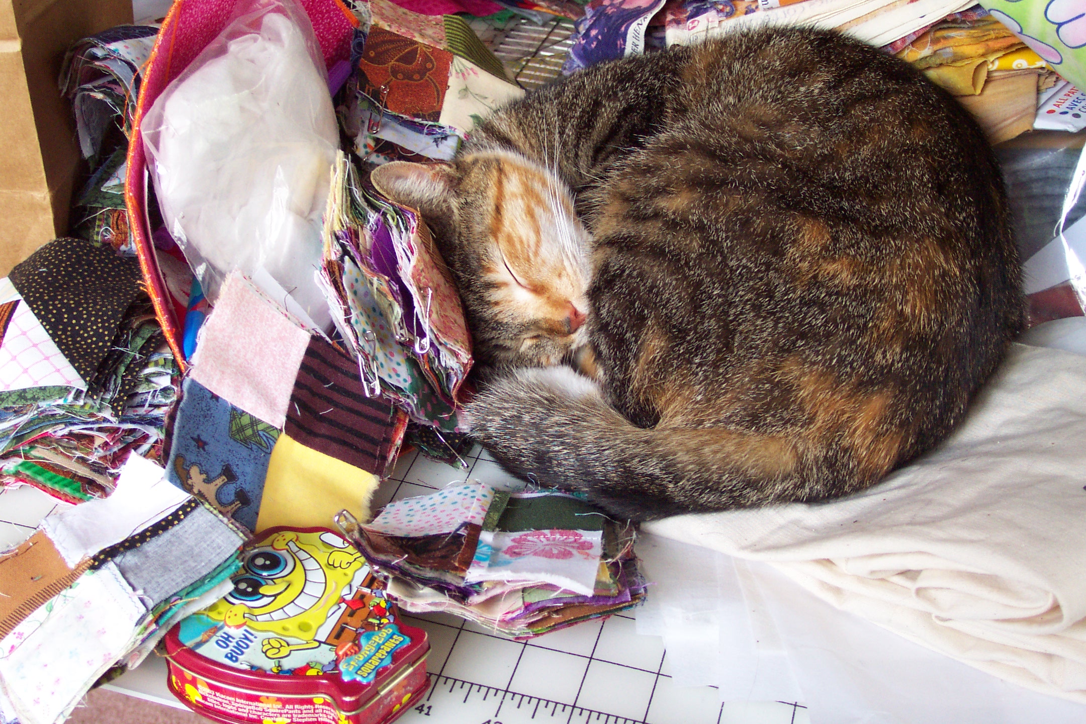 It rained during the night and all morning so we got the cats drug which is always a lot of fun. Maude tried to get into my squares and went to sleep.