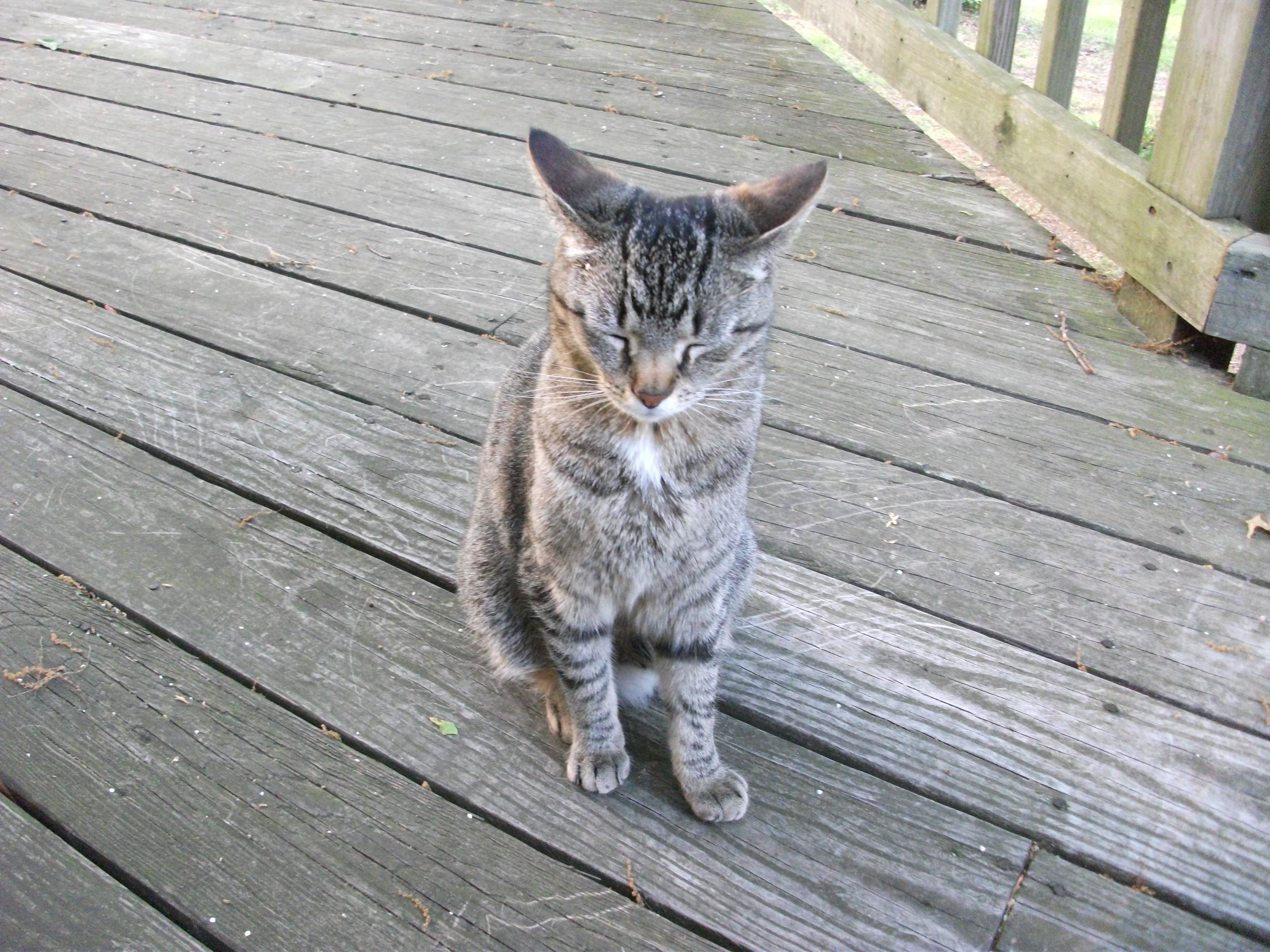 These days, the only time I see Flo is when I get up in the morning and at suppertime. She likes to sleep on the porch furniture at night and in the bushes during the day. I don’t like her spending the night out, but she doesn’t care. Don’t tell me to keep her in. You have never been around this cat when she wants to go OUT! And it better be NOW!