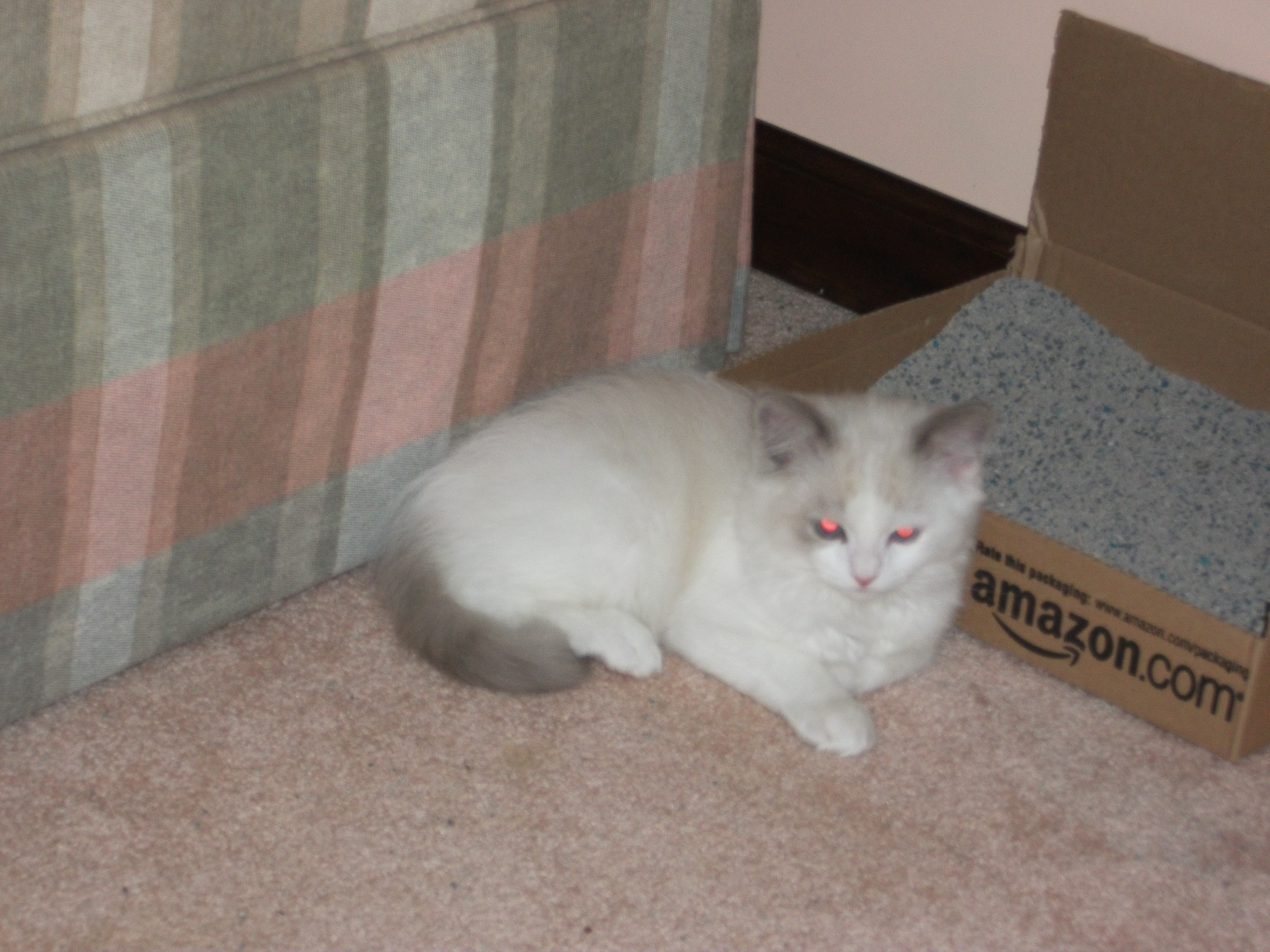 Sunday morning, she was the first one out. Here she is, trotting toward me. It’s a wonder I was able to take this before she was on me for a back scratch. It’s also a wonder my camera isn’t covered in cat hair.