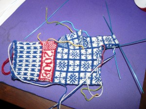 The gloves are growing a finger. I am really getting good at fixing errors, but those tiny stitches are making me crazy. A dropped stitch can get lost quickly. I’m glad I mentioned the changes on the first glove in this blog. It helps. I’d like to knit faster. I can’t get any speed with these tiny needles. At times, I feel like I have been knitting a whole sweater.