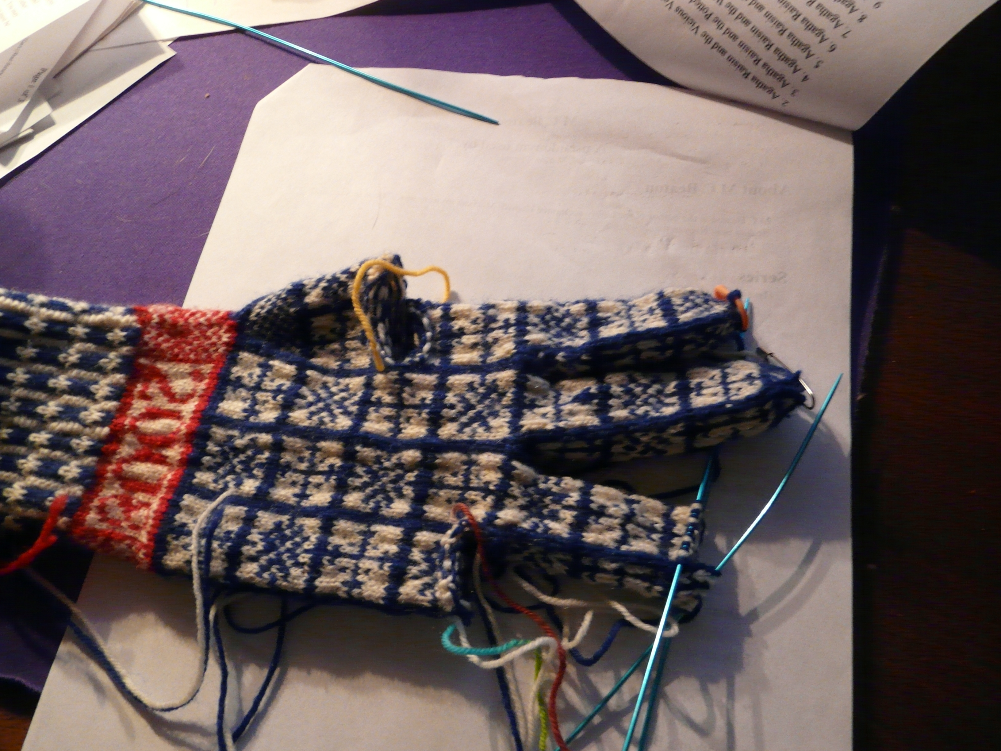I sat out back for a while this afternoon and knitted. I’m just about ready to start the fingers. i will be glad when these are done and I can go on to something else.