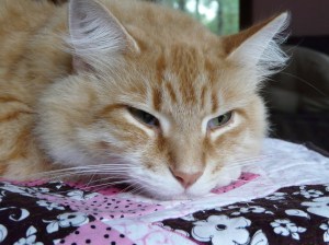 Tags:bored dog and cats, Orange Crush quilt, Sanquhar gloves