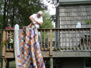 I laid my quilt to get a better look at it and decided that it doesn’t look bad at all. I didn’t work on it today. Too nice outside.