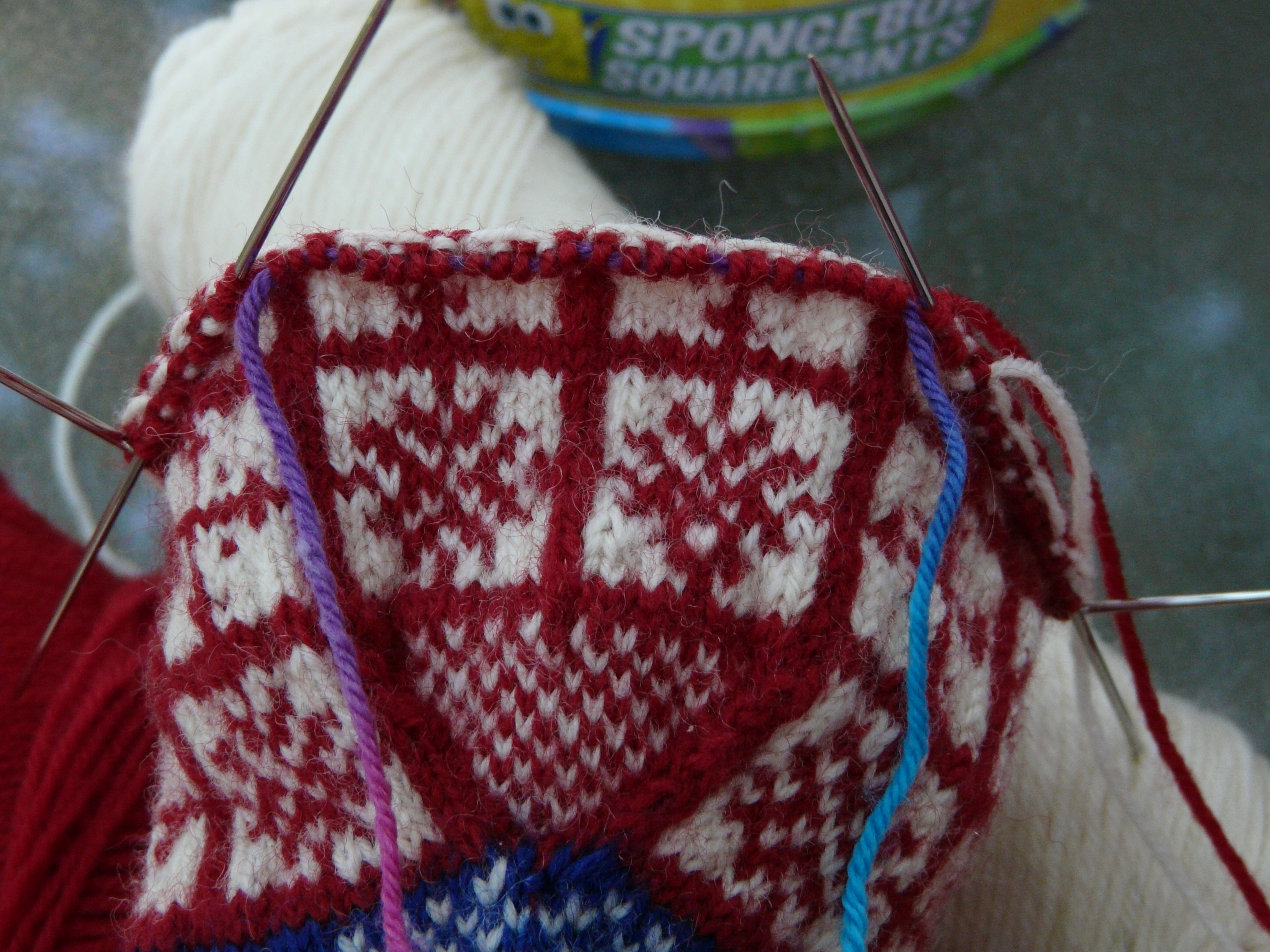 As you can see, much progress was made on my gloves. I even made it through the dreaded thumb gusset.