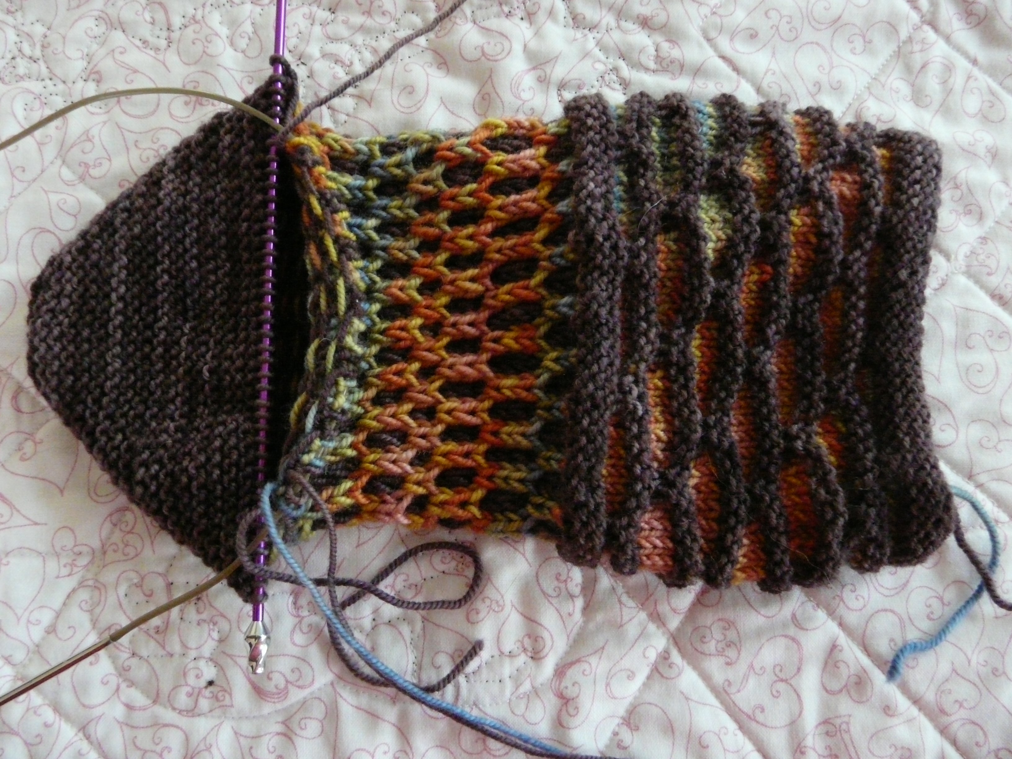 I finished my Social Network socks and started another pair, but I have yet to take a picture. They’re all ready 3/4 along.