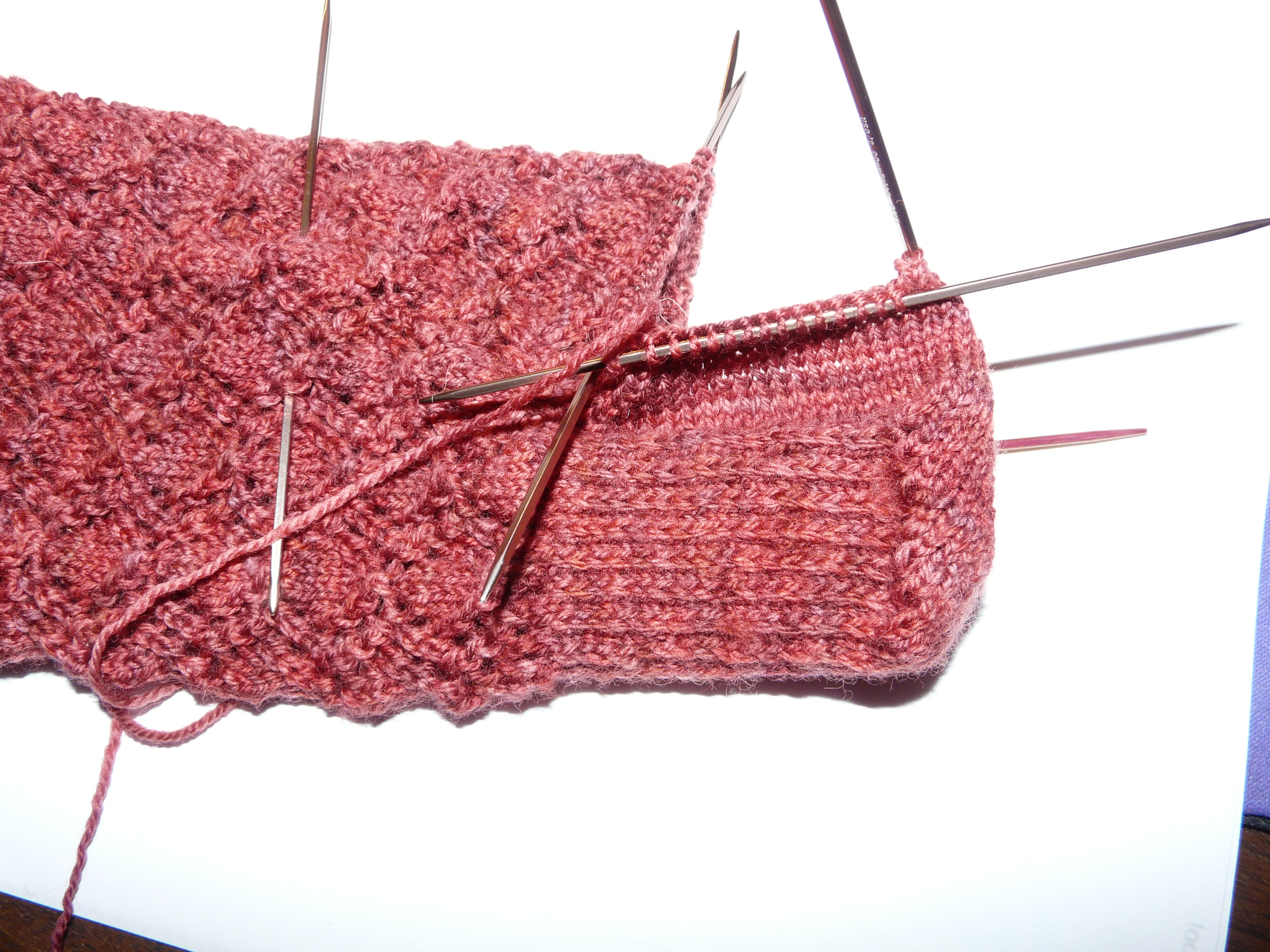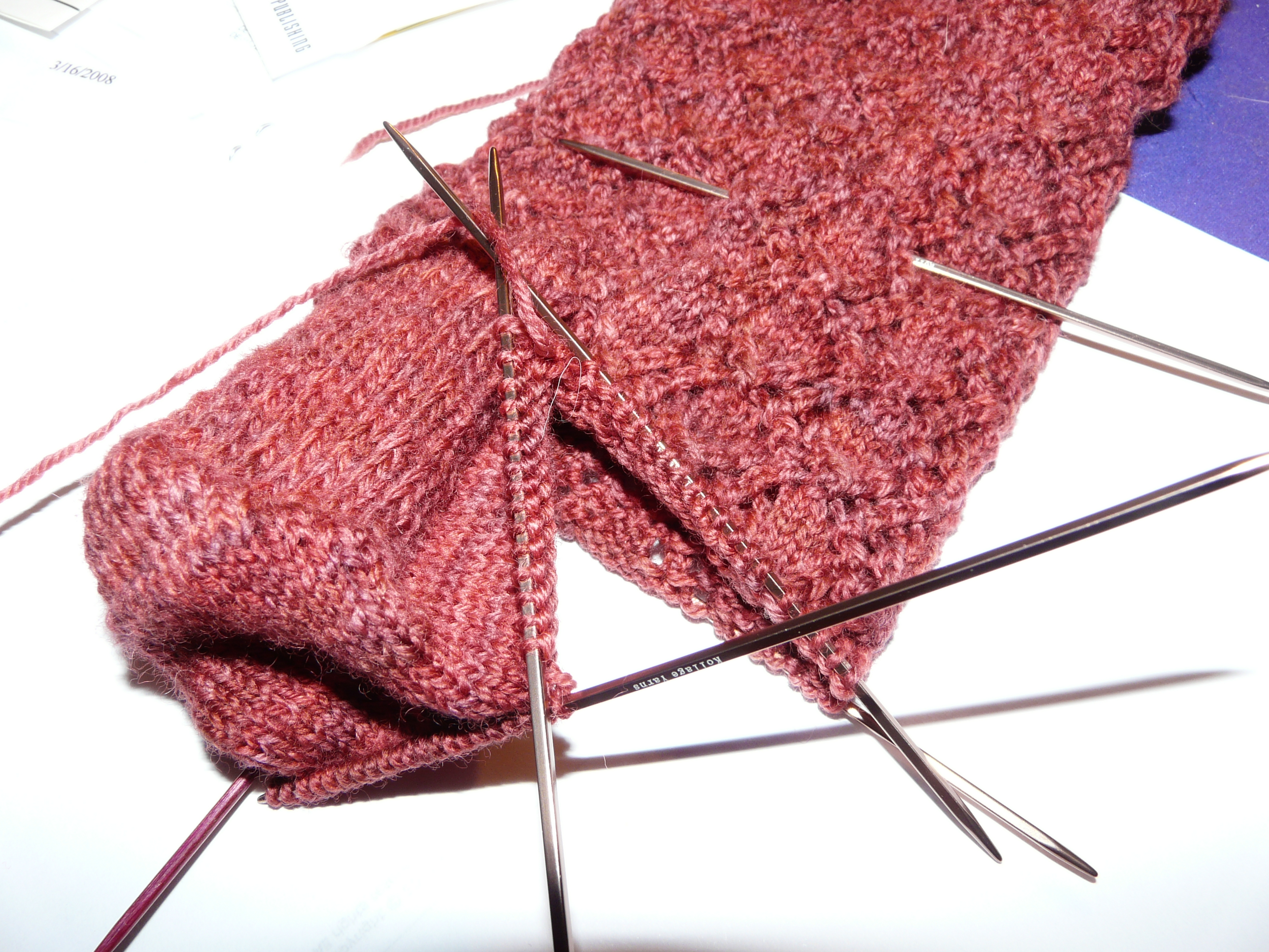 My socks will be finished today, except for the toes. I want my daughter to try them on first. They should fit. Her feet are only a half-size bigger than mine.