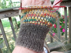 Here’s my labyrinth socks. I finished them on Friday. And finished the purple gloves on Monday.