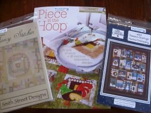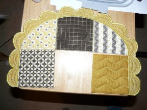 I’ve been playing with my embroidery machine. I bought this program last month for table runners made in the hoop. It’s been a lot of fun. This one is for Sweetums’ night table.