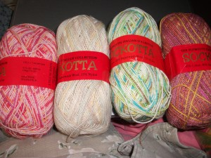 I have made these socks before in Kureyon sock yarn and I really enjoy them. This time I made them bigger since I wanted them to bag a bit. The leg is seventy stitches and the foot is sixty-five. The pattern calls for sixty. I had to do a little tweaking. I am very happy with them. I’ve worn them twice. They wash beautifully. As with other Noro, they feel better with every wash. Now, I’m thinking about going back and getting some more. They also had some other yarn that I think would be good for socks.